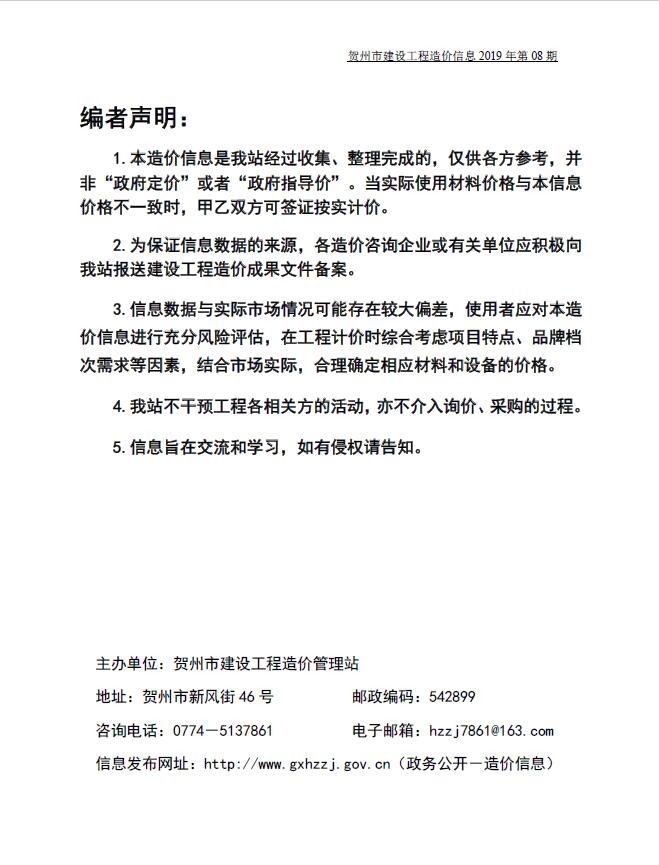 贺州市建设工程造价信息2019年8月