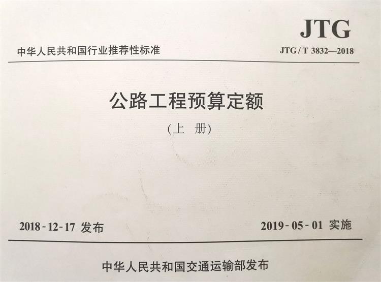 订单名称:JTG/T3832-2018公路工程预算定额(上册)