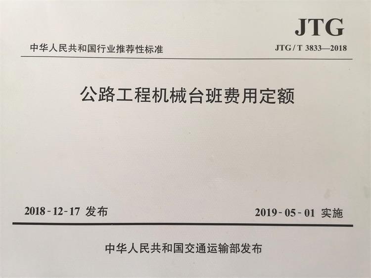 订单名称:JTG/T3833-2018公路工程机械台班费用定额