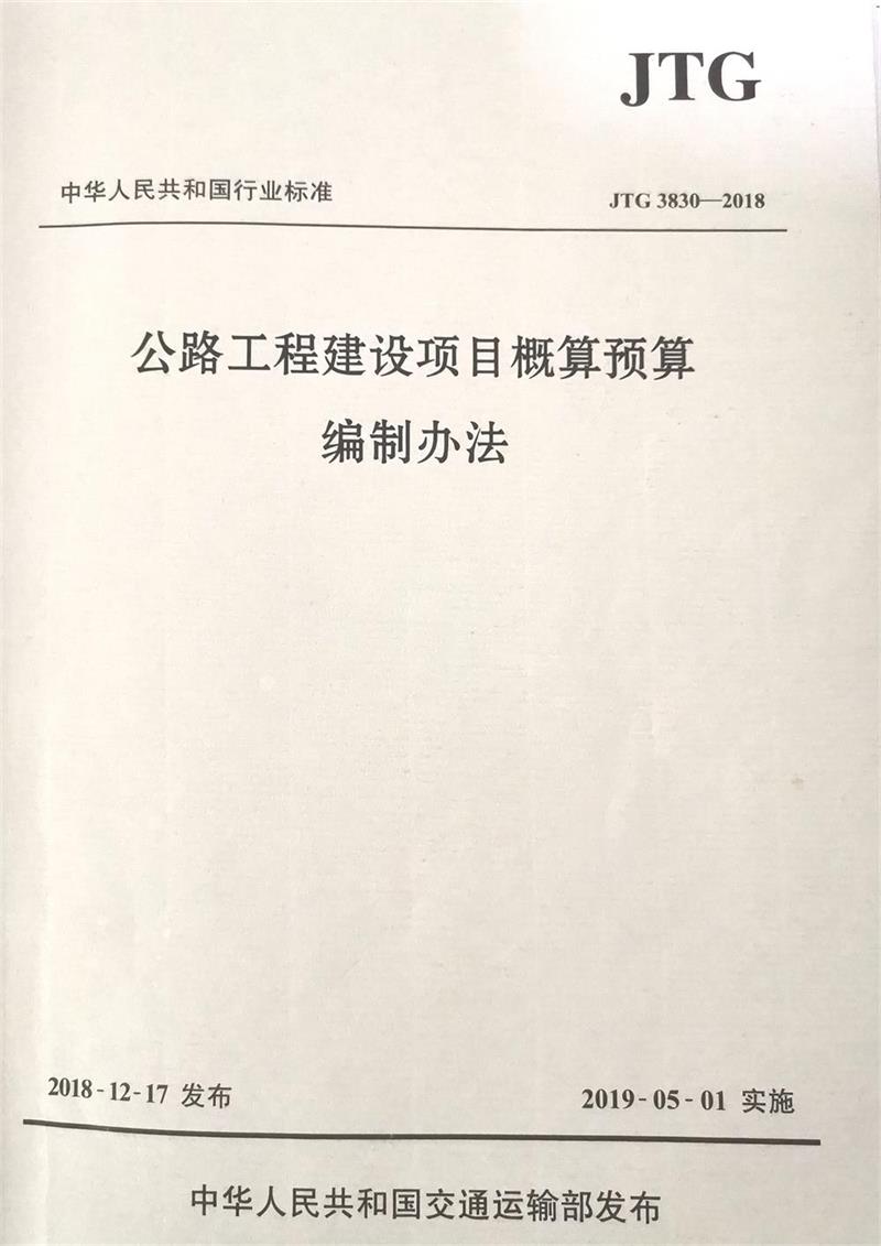 订单名称:JTG3830-2018公路工程建设项目概算预算编制办法